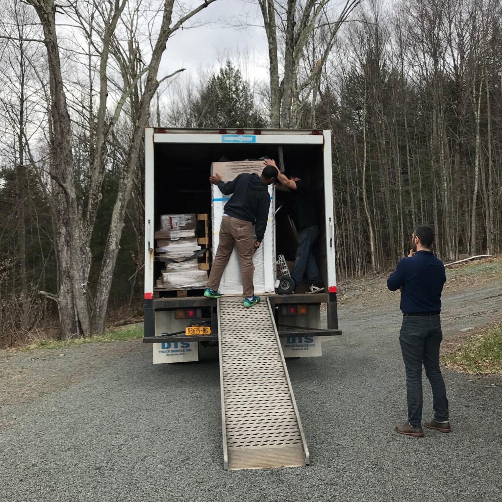 Arranging a kitchen delivery in the midst of winter to a remote address created another challenge. Due to severe weather, the delivery got rescheduled twice. Finally, our order arrived on the first day of Spring, at least, officially. Although the Catskills region is situated on the same latitude as Mediterranean places such as northern Spain and Corsica, tree buds usually don’t pop open until mid May. But once they do, nature explodes in a burst of fifty shades of green.